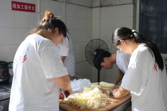 7月6日清晨,kaiyun开云官方网站语言文化与传媒学院暑期三下乡社会实践团队后勤组便开启忙碌。成员们分工协作,精心挑选豆角、猪肉、莲藕等食材,洗净切丝、削皮切片,同步熬制绿豆汤,为烹饪做好充分准备。