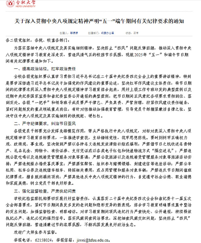 关于深入贯彻中央八项规定精神严明“五一”端午期间有关纪律要求的通知
