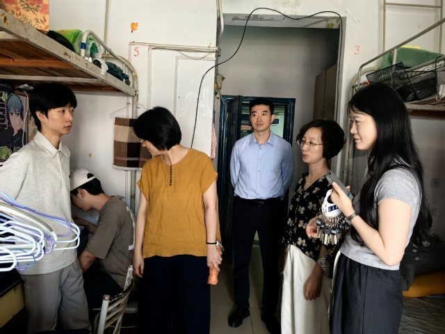 走访过程中,学院一行细致检查了宿舍卫生、用电安全、物品摆放等情况,并与学生亲切交流,了解他们的生活学习需求。针对个别宿舍存在的卫生死角、安全隐患等问题,现场提出整改意见,要求立行立改,并强调要严格遵守学校宿舍管理规定,增强安全防范意识。黄雄英指出:宿舍是学生生活的重要场所,安全整洁的环境是健康成长的基础。同学们要自觉维护公共空间,共同营造温馨家园。