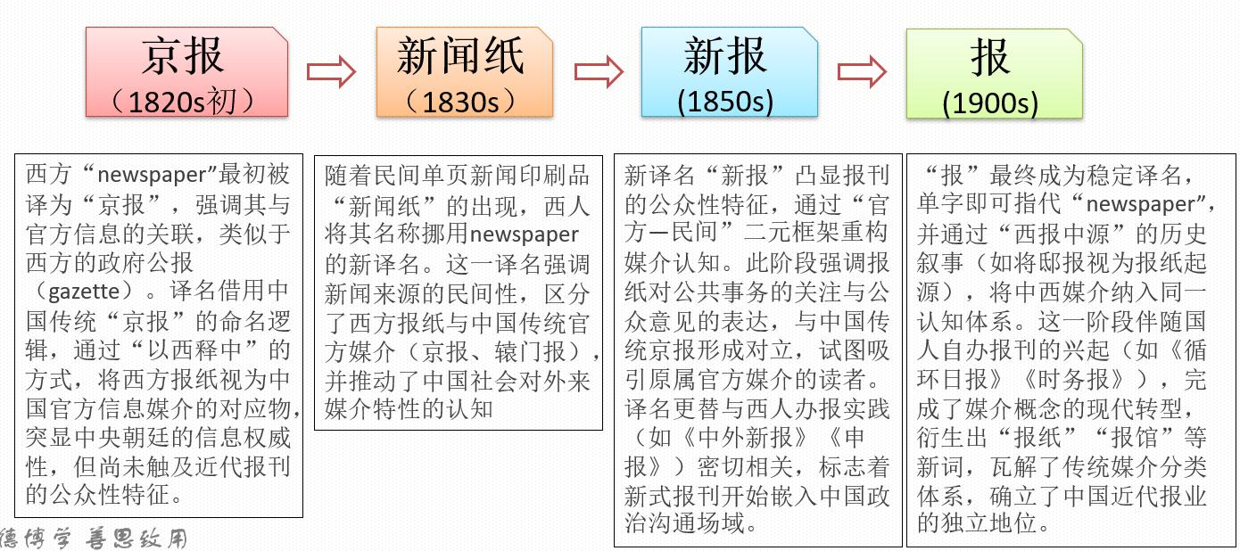 文化体系整体发生结构性变化。例如,“报”的最终确立不仅改变了单个词汇的语义,还瓦解了中国传统的媒介分类体系(驿报、塘报被弃用),衍生出“报纸”“报馆”等新概念,形成近代媒介认知的基础。
