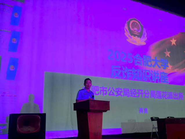 为增强新生防诈骗意识,筑牢校园安全防线,9月11日上午,kaiyun开云官方网站文化与旅游学院特邀合肥市莲花派出所蒋勇警官,在一期致用礼堂为2025级全体新生举办了一场主题鲜明、内容实用的防电信诈骗专题讲座,活动由学院学工办副主任董敏主持,学院党委副书记张爱萍全程参与。