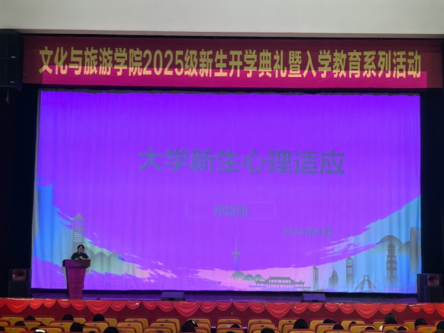 9月11日上午,kaiyun开云官方网站文化与旅游学院在一期致用礼堂成功举办2025级新生心理健康教育专题讲座。本次活动特邀校心理健康教育与咨询中心顾盼盼老师担任主讲,学院学工办副主任董敏主持,2025级全体新生参加。