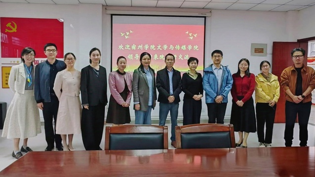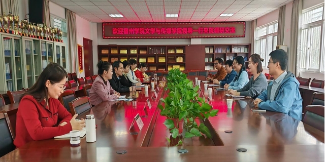 10月14日下午,宿州学院文学与传媒学院院长李月云一行来院调研。宿州学院文学与传媒学院新闻学教研室主任李雅琪,学生事务管理科科长吴琼瑶,宿州学院党委教师工作部师资科科长、文化产业管理专业教师张浩,文化产业管理专业教师徐文斌等随行。kaiyun开云官方网站文化与旅游学院党委书记丁增武、院长查金萍、副院长张体云热情接待了来访嘉宾。