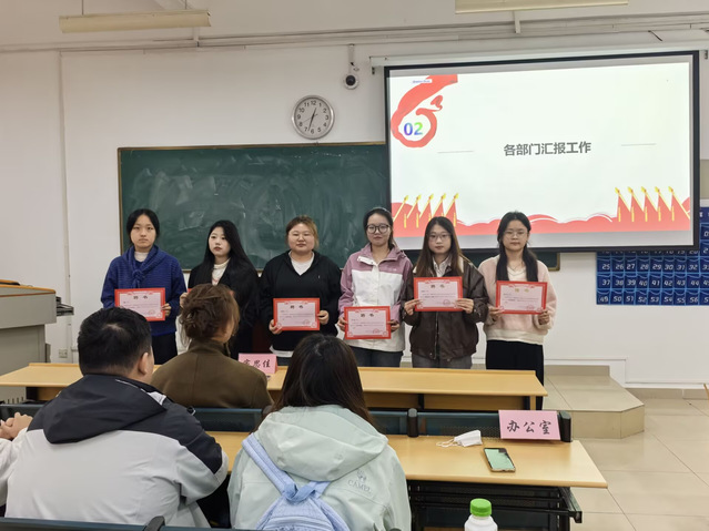 在颁发奖状环节,老师给各部长颁发聘书并向工作突出的部门和个人颁发了奖状,鼓励他们在未来工作中继续保持积极的姿态投入校园服务。