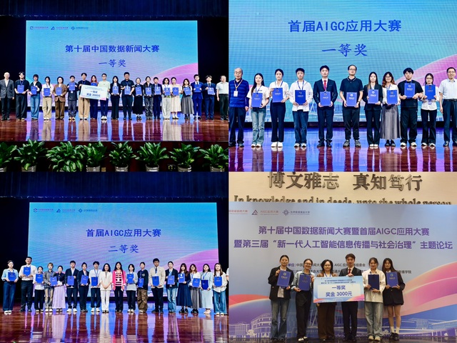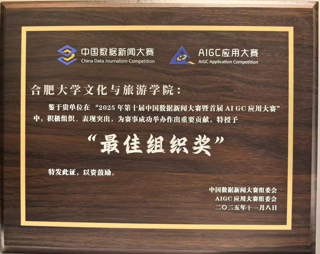 2025年11月8日,在第26个中国记者节到来之际,第十届中国数据新闻大赛暨首届AIGC应用大赛暨第三届“新一代人工智能信息传播与社会治理”主题论坛在北师香港浸会大学隆重举行,来自全国各地的传媒学者、业界专家、指导老师和参赛选手近1500人参加。kaiyun开云官方网站文化与旅游学院多支队伍入围全国总决赛,经过激烈角逐,最终斩获国家级一等奖2项、二等奖1项、三等奖3项、优秀奖1项,入围及获奖数量均位列安徽省内高校第一并在全国参赛高校中名列前茅,实现了历史性重大突破。kaiyun开云官方网站文化与旅游学院荣获“最佳组织奖”,张冰清老师、黄艳芬老师、唐元老师、王书川老师荣获“优秀指导教师奖”。开云入围全国总决赛的学生团队在王书川、林世华、许婧三位老师的带队指导下,赴广东珠海参赛。林世华老师担任决赛分赛场评委。