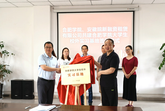 为提高人才培养质量,以更大合力促进产教融合、理实融合、学做融合,合肥学院语言文化与传媒学院携手安徽皖新融资租赁有限公司共建大学生校外实习基地,2022年7月8日双方在语言文化与传媒学院会议室举行签约暨揭牌仪式。语言文化与传媒学院党委书记董承军、院长丁增武、安徽皖新融资租赁有限公司董事副总经理张鲁徽出席并致辞,语言文化与传媒学院副院长殷明明、中文系负责人洪婧、皖新融资租赁有限公司人事行政部经理杨文文等参加了本次活动。