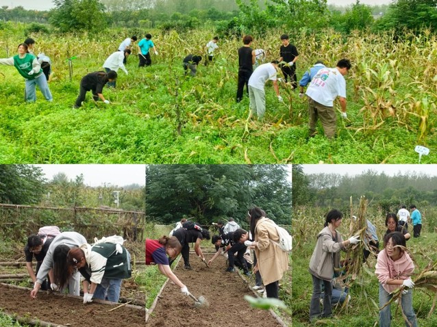 活动伊始,学生在基地工作人员的引导下参观了生态农场。工作人员介绍了大棚实时感应检测、风吸式杀虫灯、智能降温设施等现代化设备,丰富了学生对现代农业科技应用以及马郢数字农业产业的认知。随后,在工作人员的带领下,学生分起了小组,并拿起白手套和铁锹积极投入农业劳作,清理杂草、平整土地、点播蔬菜老种子、收割玉米秸秆等,与泥土近距离接触,躬身体验了农业日常,实地上了一次劳动实践课,现场气氛热烈。