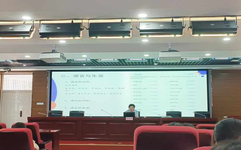 促进我院师生对语言学及应用语言学学科的深入了解拓展学术视野语言文化与传媒学院硕士生导师、副教授陈红燕为我院师生做了以“语言与生活”为主题的学术报告。本次报告由副院长查金萍主持,语言文化与传媒学院师生参加了报告会。