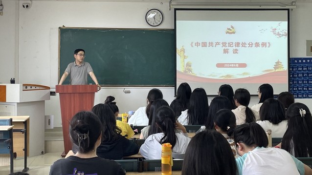 6月14日中午,语言文化与传媒学院学生第二党支部在5栋305教室举行了党纪学习教育专题党课。此次专题党课由语言文化与传媒学院副院长殷明明主讲,学生第二党支部全体党员参加。