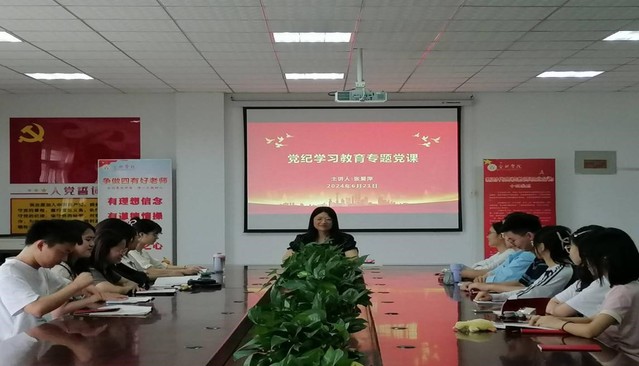 621日中午,语言文化与传媒学院学生第一党支部在52楼大会议室举行了党纪学习教育专题党课。此次专题党课由语言文化与传媒学院党委副书记、纪委书记张爱萍主讲,学生第一党支部全体党员参加。