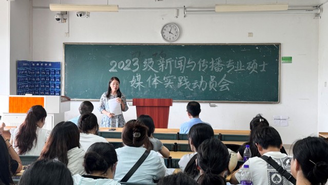 为进一步加强实习工作管理,切实保障实习质量,语言文化与传媒学院于2024年7月3日在5栋306召开2023级新闻与传播专业硕士媒体实践动员会。语言文化与传媒学院党委书记储昭辉教授、院长丁增武教授、副院长查金萍教授、新闻与传播学位点负责人郭静副教授出席本次大会,2023级新闻与传播专业全体研究生参加会议,会议由郭静主持。