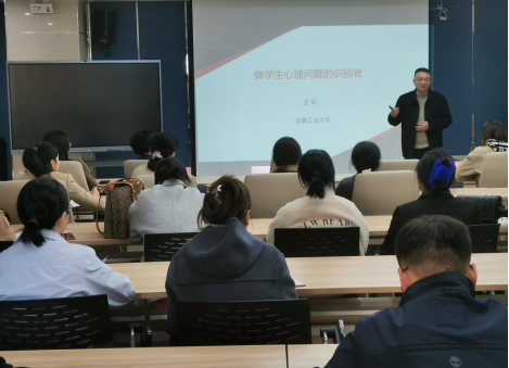 陶龙泽在致辞中表示,各位老师要切实关心学生,及时发现和帮助可能存在心理问题的学生,维护校园的安全与稳定。王军介绍了大学生心理问题的类型和形成原因,讲授了如何快速有效的识别心理异常,如何更好的帮助学生避免心理问题的发生。