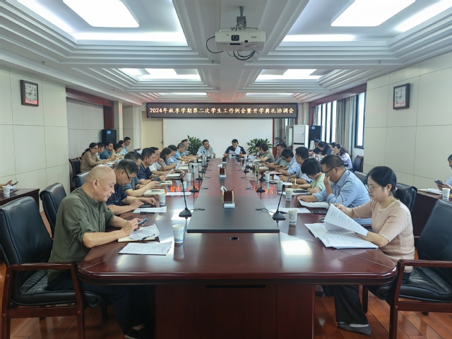 会上,学生处副处长陶龙泽部署开学典礼相关工作以及假期学生安全教育、综合测评、国家奖助学金评选、医保等事项。研究生处刘鹏飞介绍了研究生心理测评情况、毕业生信息完善、评奖评优等工作进展。团委李雯雯汇报迎新晚会的筹备情况。学生处刘莹汇报就业工作进展与近期招聘会组织情况。公体艺部主任许刚部署田径运动会筹备、学生体测和艺术课、体育课程选课等工作。保卫处副处长田野通报近期电信诈骗情况、交通安全形势等。丁增云心理健康教育、学风建设、宿舍管理、就业工作、辅导员队伍建设及假期安全管理等方面进行部署。