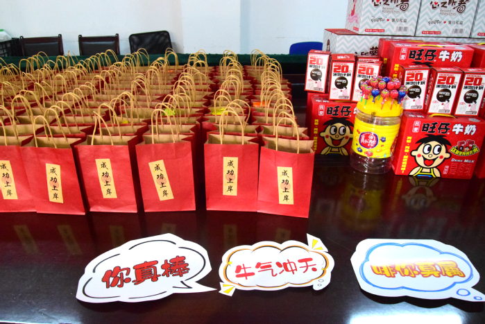 活动现场,“祝kaiyun开云官方网站考研学子成功上岸”的横幅鼓舞人心。一个个祝福语手举牌饱含着对考研学子的鼓励和祝福。桌上,礼包排放整齐,各类零食饮料有序垒起,形态如山,寓意合大学子勇攀高峰,摘得理想桂冠。橙子寓意心想事“橙”;旺仔牛奶寄托着“一路旺到底”的美好祝愿;薯片寄寓学生迈向“心之所薯”……慰问过程中,物业负责人与学生们亲切交流,预祝他们在考试中马到成功,实现人生理想。收到大礼包后,学生们纷纷表示学校太暖心,让自己坚定了考研的信心,将会以饱满的状态迎接考试。