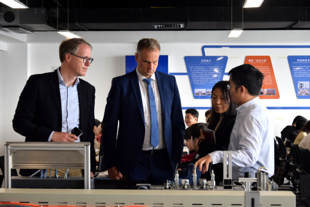 王其东陪同亚历山大·施梅曼一行深入能源材料与化工学院与大众学院,调研先进电池关键材料与技术重点实验室、大众学院校企培训中心与校企实训中心、大众学院产教融合平台实验室。