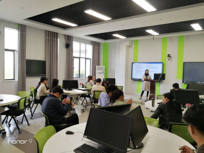 杨小雨对比赛规则、评比要素、平台资源建设、“学习通”教学活动控件的使用进行介绍,演示了信息化教学手段在日常教学活动中的应用,与教师们观摩上一届大赛部分获奖选手比赛视频,并针对教师的疑问进行现场指导与解答。