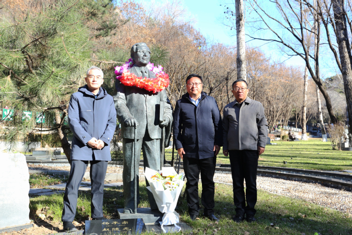 在八达岭陵园,邬平川一行在杨承宗教授纪念像前肃立默哀,敬献鲜花,深切缅怀杨承宗教授为中国核科技事业和kaiyun开云官方网站建设发展作出的卓越贡献,向这位科学巨匠和教育大家致以无限敬意与深切怀念。