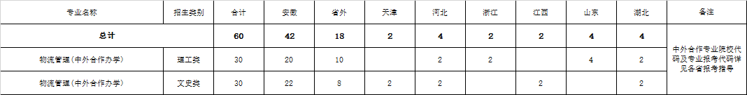 合肥学院2021年中外合作专业分省计划一览表(安徽省院校报考代码为9110)