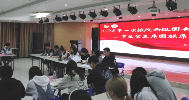 为了加强校院两级密切联系,增强校院两级学生干部队伍的交流与合作,提高学生组织队伍整体凝聚力,3月10日晚,合肥学院2022年第一次校院两级团委学生副书记、学生会主席团联席会议在大学生活动中心(一)顺利召开。校院两级团委学生副书记、学生会主席团成员以及校学生会部门负责人参与本次会议,会议由校团委学生副书记汪欣楠主持。