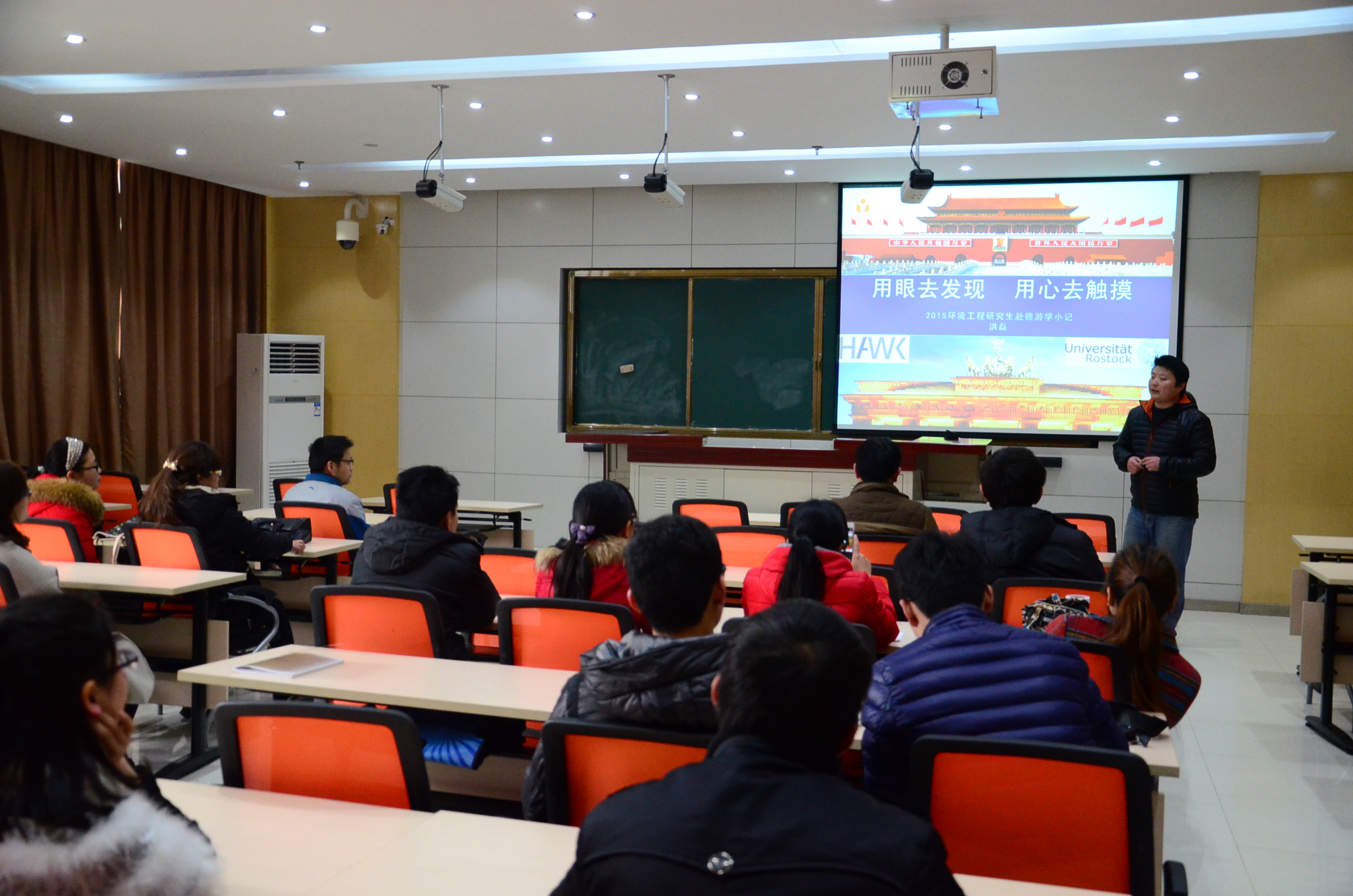 交流报告会上,游学指导教师王磊、洪磊、张金流分别介绍了带队赴韩国、德国以及在省内游学的情况。部分参加游学的学生也通过照片、视频等方式与大家分享了他们精彩纷呈的游学之旅,并讲述了他们参加此次游学的感悟和收获。据了解,2014年,开云共有8名研究生赴韩国湖西大学、天安市环境能源事务所、韩国电子产业环境协会、现代汽车公司(牙山工厂)污水处理厂参观游学。5名研究生赴德国哥廷根应用科学大学、罗斯托克大学、施特拉松德应用科学大学、云德生物能源村、弗劳恩霍夫研究院等游学。在省内游学的同学则赴青阳、滁州、蚌埠等地参观调研了相关的环保企业。