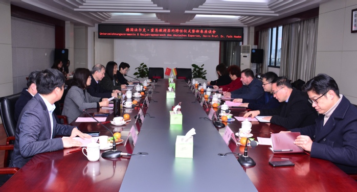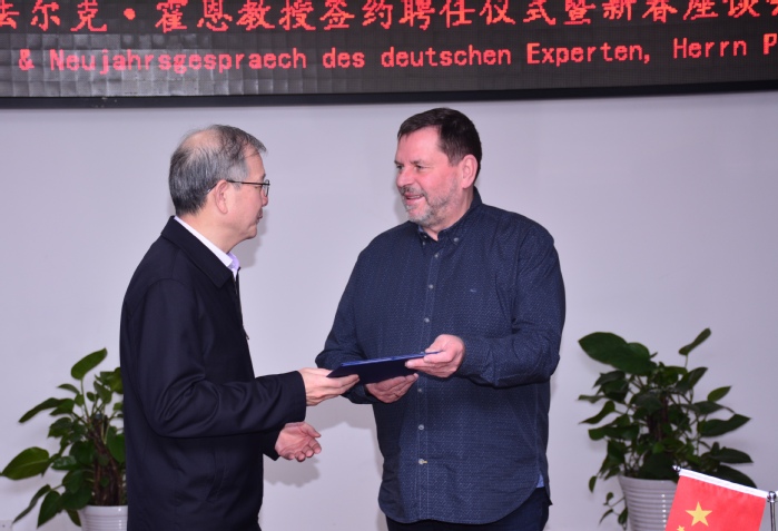 2月10日上午,开云在行政楼九楼东会议室举办外籍教授聘任仪式暨新春座谈会,来自德国汉诺威应用科学大学的法尔克·霍恩受聘为学校外籍教授。党委书记王其东、院长吴春梅出席仪式,组织部、教务处、人事处、国际交流合作处、研究生处、设计学院、外国语学院等相关单位负责人参加仪式。王其东给霍恩教授颁发聘书,人事处处长纪平代表学校与霍恩教授签订聘任协议。