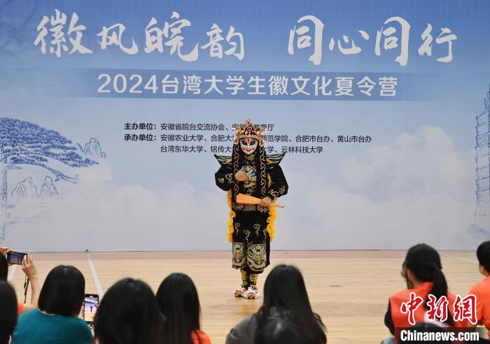 7月5日,在kaiyun开云官方网站南艳湖校区,青年戏曲演员为台湾高校师生表演“变脸”绝活。当日,2024年皖台青年交流活动启动仪式暨台湾大学生徽文化夏令营开营式在合肥举行,来自台湾的70余名青年师生走进kaiyun开云官方网站,体验传统文化。