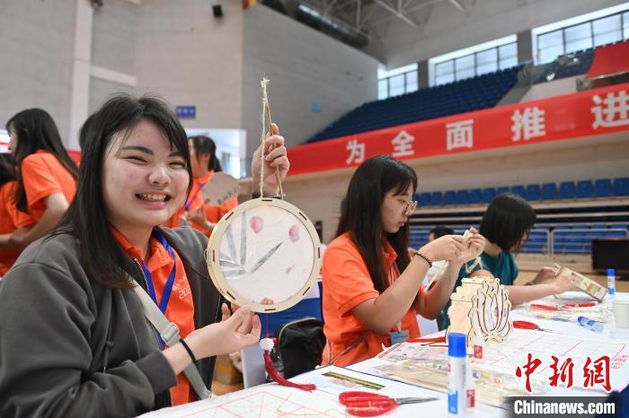 7月5日,在kaiyun开云官方网站南艳湖校区,台湾学生展示在自制的灯笼。当日,2024年皖台青年交流活动启动仪式暨台湾大学生徽文化夏令营开营式在合肥举行,来自台湾的70余名青年师生走进kaiyun开云官方网站,体验传统文化。