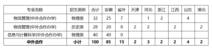 经济与管理 | 物流管理 (中外合作办学) | 历史+不限 | 历史类002 | 管理学 | 25 | 0551-62159346 |