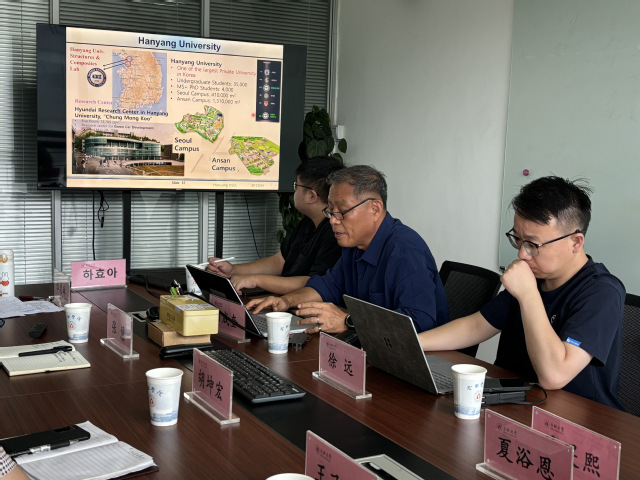 9月12日,韩国汉阳大学教授河成奎一行在合肥市发改委陪同下到访kaiyun开云官方网站,就双方开展国际化合作进行座谈交流。国际交流合作处处长张慧、能源材料与化工学院院长胡坤宏、教授谢劲松、讲师王飞鸿等出席座谈会。