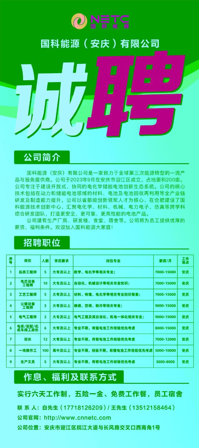 国科能源(安庆)有限公司招聘公告