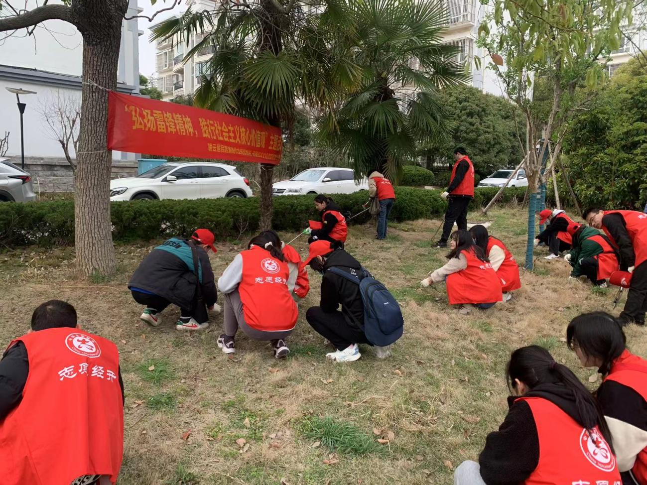 ▲合肥学院志愿者清理乡村花园小区草坪垃圾