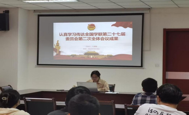 会上,王梦圆首先介绍了全国学联的基本概念和发展历程。随后她详细介绍了全国学联第二十七届委员会第二次全体会议具体内容,学习了全国学联《关于认真学习宣传贯彻党的二十大精神团结带领广大同学坚定跟党走、奋进新征程的决议》,她强调要把党的领导贯穿在学联学生会改革建设的各方面、全过程,要突出组织效能,规范制度建设和运行机制,创新运行模式,更好融入党领导下共青团主导的青年组织体系,形成育人合力。最后王梦圆领学了《中华全国学生联合会委员会、主席团工作规则(试行)》,并希望大家能够反复阅读,全面领会文件精神,并认真贯彻履行。