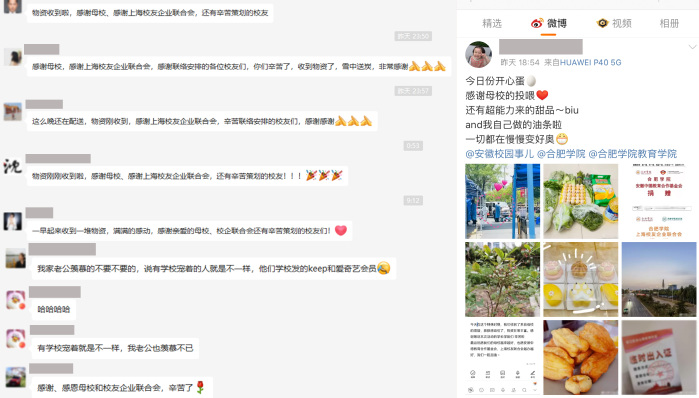 在上海校友企业联合会的鼎力支持和多方协调下,截至5月2日,价值超过3万8千元的103份“爱心礼包”在克服了物流运输的种种困难后,已陆续派送到分散在上海各地区的校友手中。拿到这些珍贵的物资后,校友们纷纷通过微信、微博等方式表示:礼包种类很丰富,蔬菜很新鲜,解决了燃眉之急,非常感谢母校及联合会的关心和帮扶,让他们真切地感受到学校的牵挂与惦念,更加坚定了战胜疫情的决心和信心! 部分颇具影响力的微博账号还转载了相关校友的评论,反响良好。