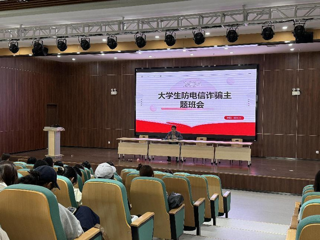 为全面提升设计学院2024级本科新生网络安全意识和防范电信诈骗能力,切实维护个人财产安全及信息安全,学院于11月4日中午在55栋204报告厅开展反诈宣传主题教育大会。院党委书记鲁先瑾、副书记吴云、新生辅导员出席活动,24级新生参加本次活动。