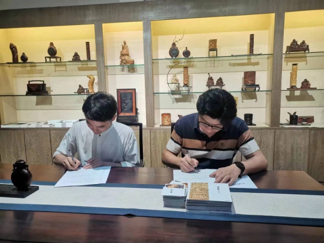 为响应新文科建设,加强产教融合,充分发挥高校与企业双方优势,实现校企协同育人功能。6月20日上午,设计学院党委书记鲁先瑾、院长潘峰带领老师与学生共十人前往黄山徽州竹艺轩雕刻有限公司洽谈校企合作事宜,双方就后期的合作展开了深度交流,并签订了全面合作框架协议书。