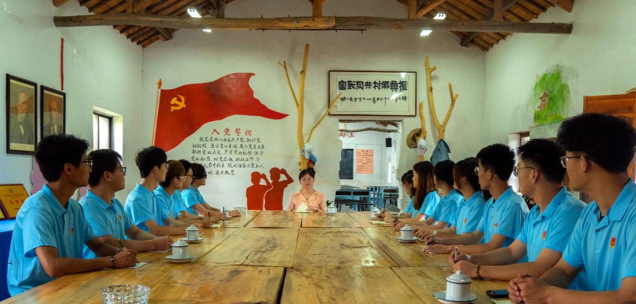 早上八点四十,吴老师在驻地的乡建学院为暑期“三下乡”队员开展以“助力乡村振兴,贡献青春力量”为主题的第二次团课教育活动。吴老师带领我们集中学习了二十大报告中关于青年工作的论述,指出党对青年一代寄予殷切期望,我们要深刻把握党的二十大精神的核心要义和丰富内涵,切实当好党的忠实助手和可靠后备军,把忠诚核心作为共青团最鲜明的政治品格,把理想信念作为共青团最鲜亮的政治底色。吴老师希望大家作为当代新青年,一定要发挥党的优良传统,提升时代责任感,始终围绕在党中央的领导下,继承优良传统,自觉按照党指引的方向健康成长,践行“请党放心,强国有我”的青春誓言,牢记党和人民的重托,履行新时代、新阶段青年大学生肩负的历史使命。这次我们设计学院暑期三下乡社会实践活动,要紧密结合广德市邱村镇发展要求,用我们所学的专业技术,切实推进邱村镇的美丽乡村建设,促进农民增收。会议第二项,吴老师带领三下乡队员们共同重温入党誓词,全体队员合影留念。