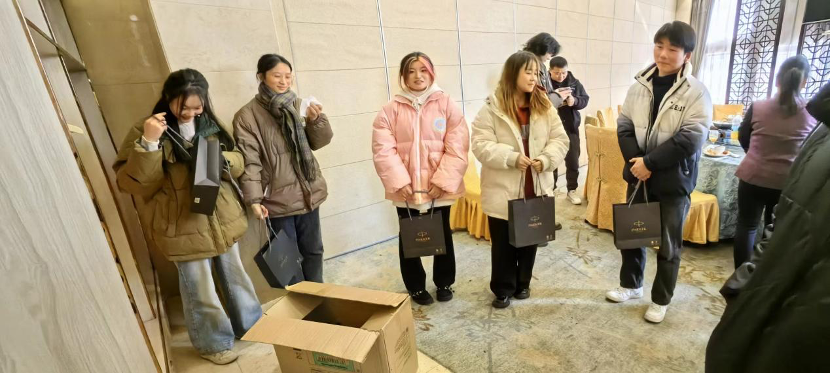 最后,竞怡集团经理合肥学院校友刘文渊,吴山山为到访师生送上钢笔作为礼物,勉励孩子们要积极奋斗,迎难而上,做生活中的强者。