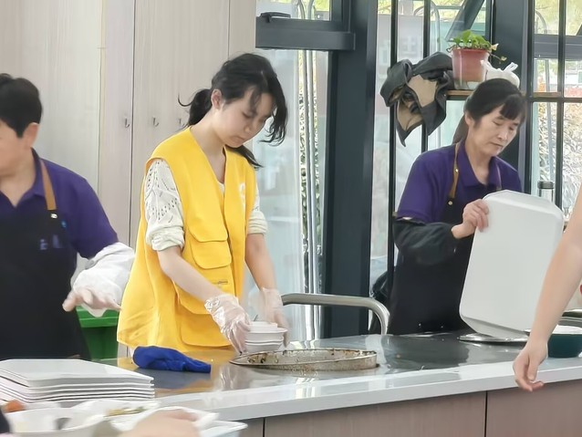 在食堂秩序维护方面,志愿者们协助工作人员清理餐桌、回收餐具,帮助维护了食堂的整洁与卫生,更加理解了食堂工作人员的辛苦。