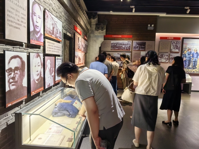 参观展馆,追寻历史足迹。馆内展陈用丰富的图片、文物、展板展示了100多名合肥党史上的重要人物,并运用多媒体技术呈现了合肥北乡支部创建、双合集农民暴动、合肥解放等党史上的大事件。大家聆听了革命先烈的英雄事迹,停下脚步近距离观看资料,并与身边的人轻声交流,深刻感受到中国共产党的伟大精神。