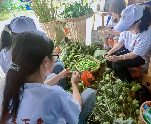 活动期间,志愿者们协助荷花基地开展丰富多彩的助农活动。在销售线上荷花池乌篷船票的过程中,志愿者向游客们详细介绍荷花池的盛景,耐心地解答游客们的各种问题;帮助农户剥莲蓬取莲子,并积极宣传和推广荷花系列产品,帮助农户拓宽销售渠道,为农民带来经济效益的同时也让更多的人了解到荷花文化的魅力。