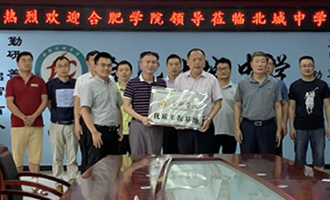 合肥北城中学是由长丰县人民政府投资兴建,合肥一中全面托管的公办寄宿制高中。学校既有县委县政府的大力支持,又有与合肥一中在教育教学等各方面的等高对接。基础设施高端一流,管理模式扁平高效,教师队伍年轻活力,特色课程育人有“度”,校园文化独具魅力。授牌仪式上,王东录首先代表合肥北城中学致欢迎词,并对合肥北城中学的基本概况进行了介绍。他强调合肥北城中学致力于打造学习型、学术型学校,希望两校以建设“优质生源基地”为契机,进一步促进了大学教育与中学教育的良性互动,加快培养更多创新型人才。