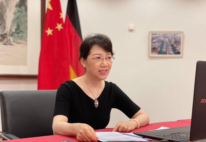 郭金秋在开幕致辞中表示,疫情给国际交流带来限制,但没有阻隔中德青少年的友谊,“汉语桥”比赛一如既往发挥着连接世界、延续友谊的作用。她希望同学们始终保持对汉语的热爱,让梦想乘着语言和文化的翅膀飞翔,期待各位选手能早日有机会到中国学习交流,也期待越来越多的德国青少年加入中德语言文化交流的大家庭,增进两国人民的相互理解和友谊。