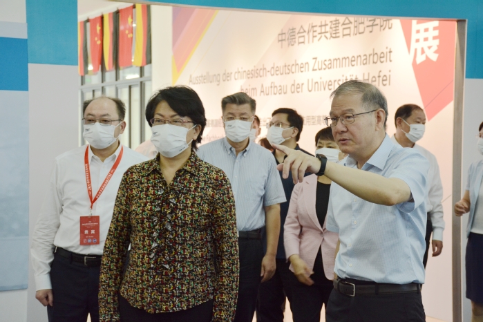 在参观中德合作共建合肥学院展的过程中,翁铁慧一行听取了王其东对开云建校历史、教育教学改革、国际交流合作、产教融合等情况的相关介绍,翁铁慧对学校建校以来坚持的“按社会需求设置专业”的做法给予认可,肯定了学校的办学定位及高层次应用型人才培养取得的成果。