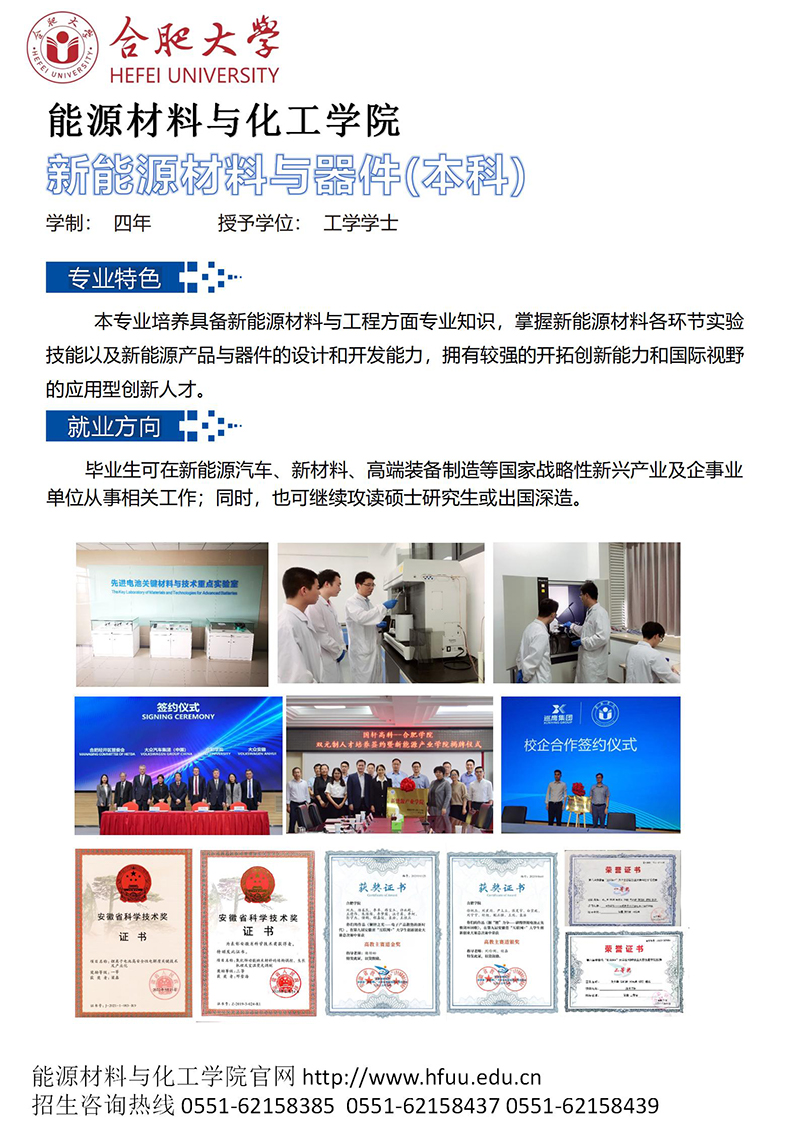 新能源材料与器件(本科) 咨询电话:0551-62158385