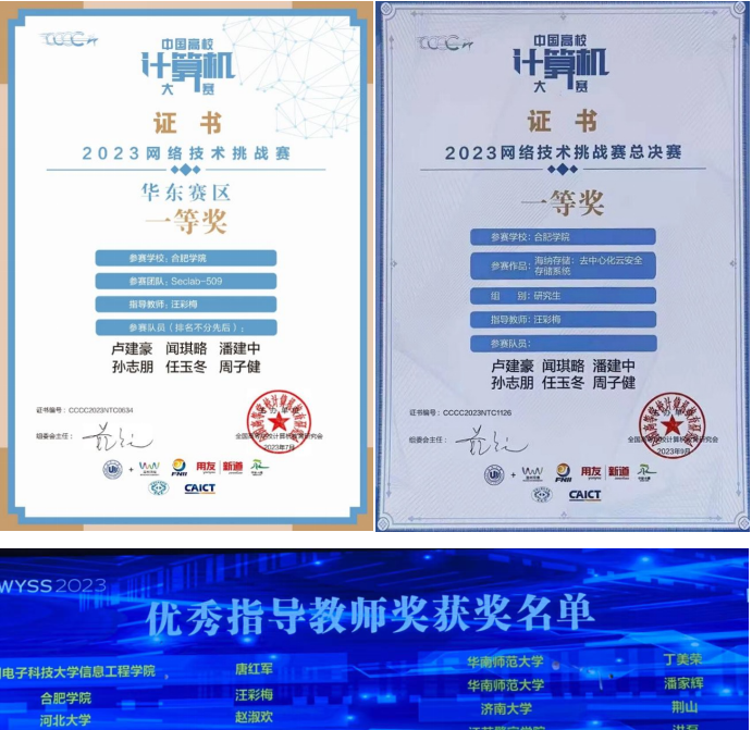 近年来,在学校和人工智能与大数据学院的大力支持下,网络与信息安全团队先后发表了4篇学术论文,在挑战杯大学生课外学术科技作品竞赛、中国高校计算机大赛-网络技术挑战赛、安徽省大学生信息安全竞赛、安徽省物联网创新应用大赛、安徽省大学生程序设计大赛等学科竞赛活动中获几十余次奖项与表彰。团队将进一步加强信息安全知识学习,培养实践及创新能力,为网络安全强国建设做出更大贡献。