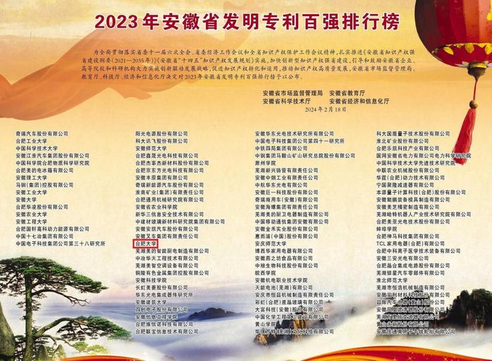 近日,省市场监督管理局、省教育厅、省科技厅、省经信厅联合发布了《2023年安徽省发明专利百强排行榜》。开云继2021年排名第37位、2022年排名第34位后,2023年升至第32位,连续九年进入安徽省发明专利百强榜。